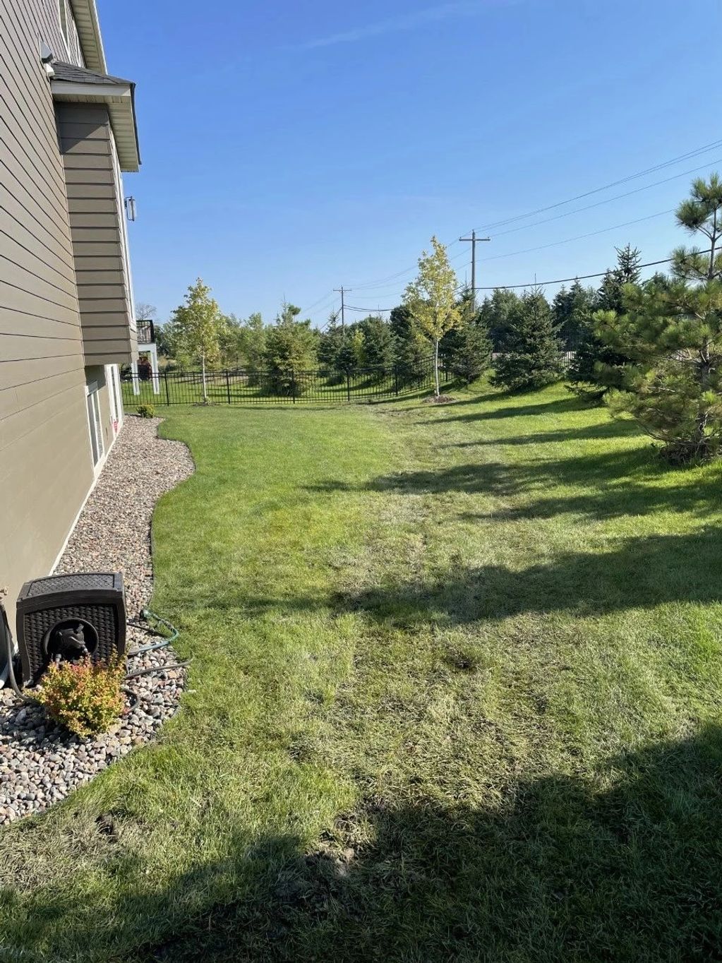 It may seem like this process creates a mess and your yard would be left in bad shape. Here is a picture the day of project completion. The entire width of this backyard was saturated but within 2 weeks of having the french drain installed it was significantly drier and our trench line was not noticeable at all.